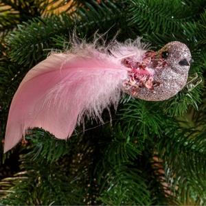 Прищепка на елку А1406РК 3шт.12см Птичка розов.
