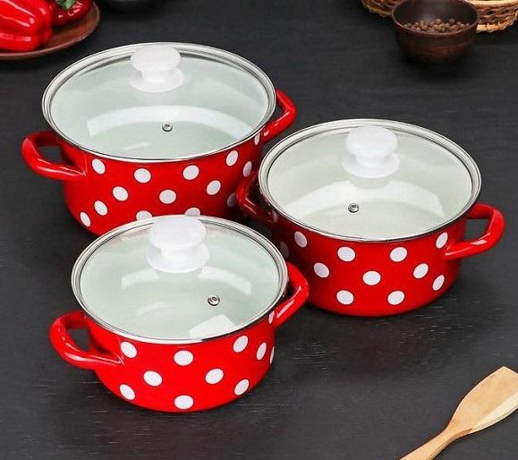 Набор 3пр.Белый горох-1-Люкс красный(1,9+2,5+3,7л)