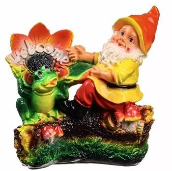 Изд-е гипс"Гном с лягушкой на бревне"250*260мм 145