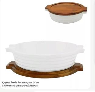 Блюдо круг.д/запекания 24см дер.кр./подст.фарфор п/у 142-118 /12/