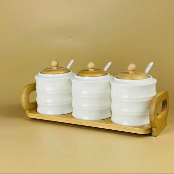 Н-р банок д/специй 3шт 320мл BAMBOO лож.+подст п/уп фарф.140-155 /16/